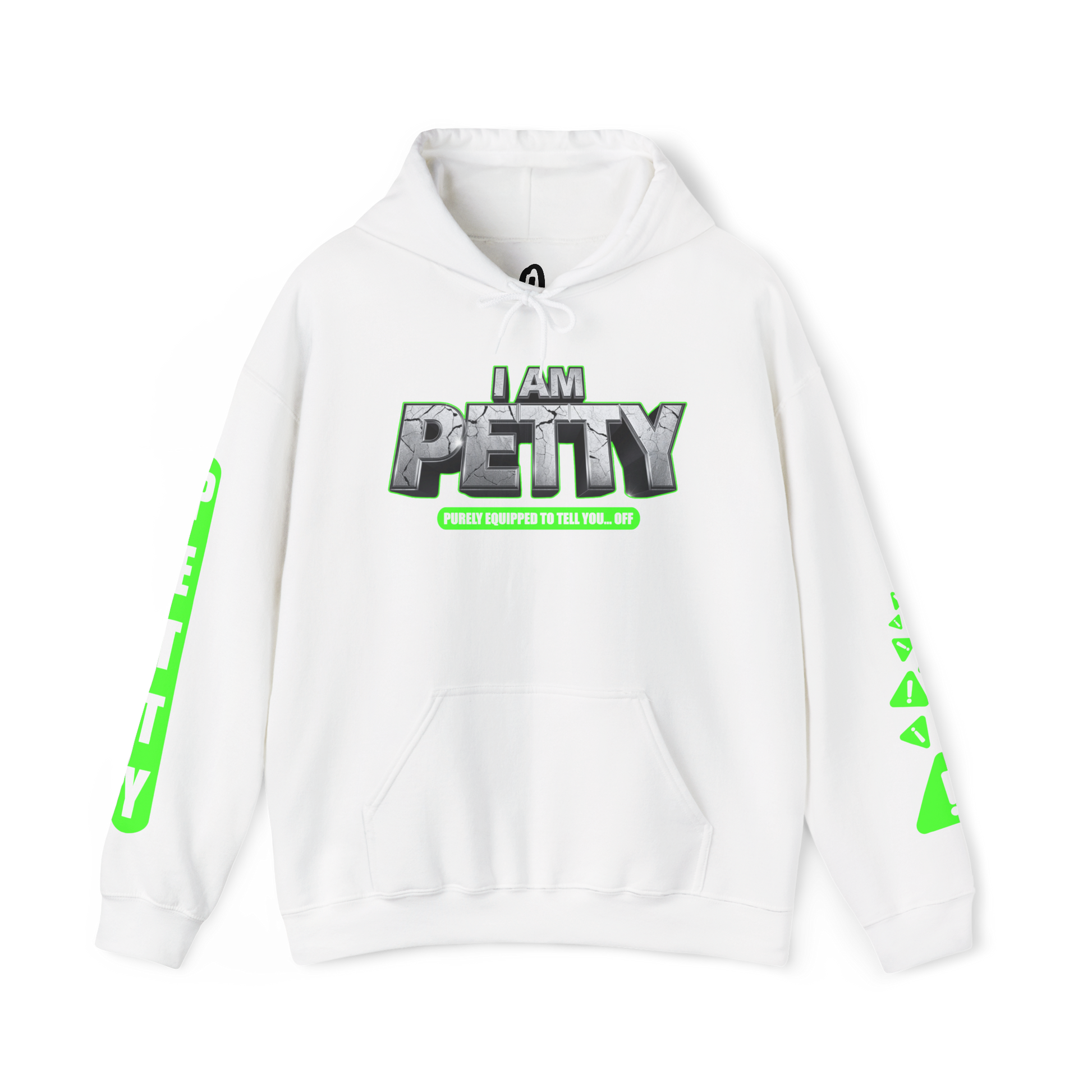 I Am Petty Hoodie is for the ones who move with purpose, edge, and confidence. Every angle front, sleeves, and back tells a story: bold, unapologetic, and fully visible.